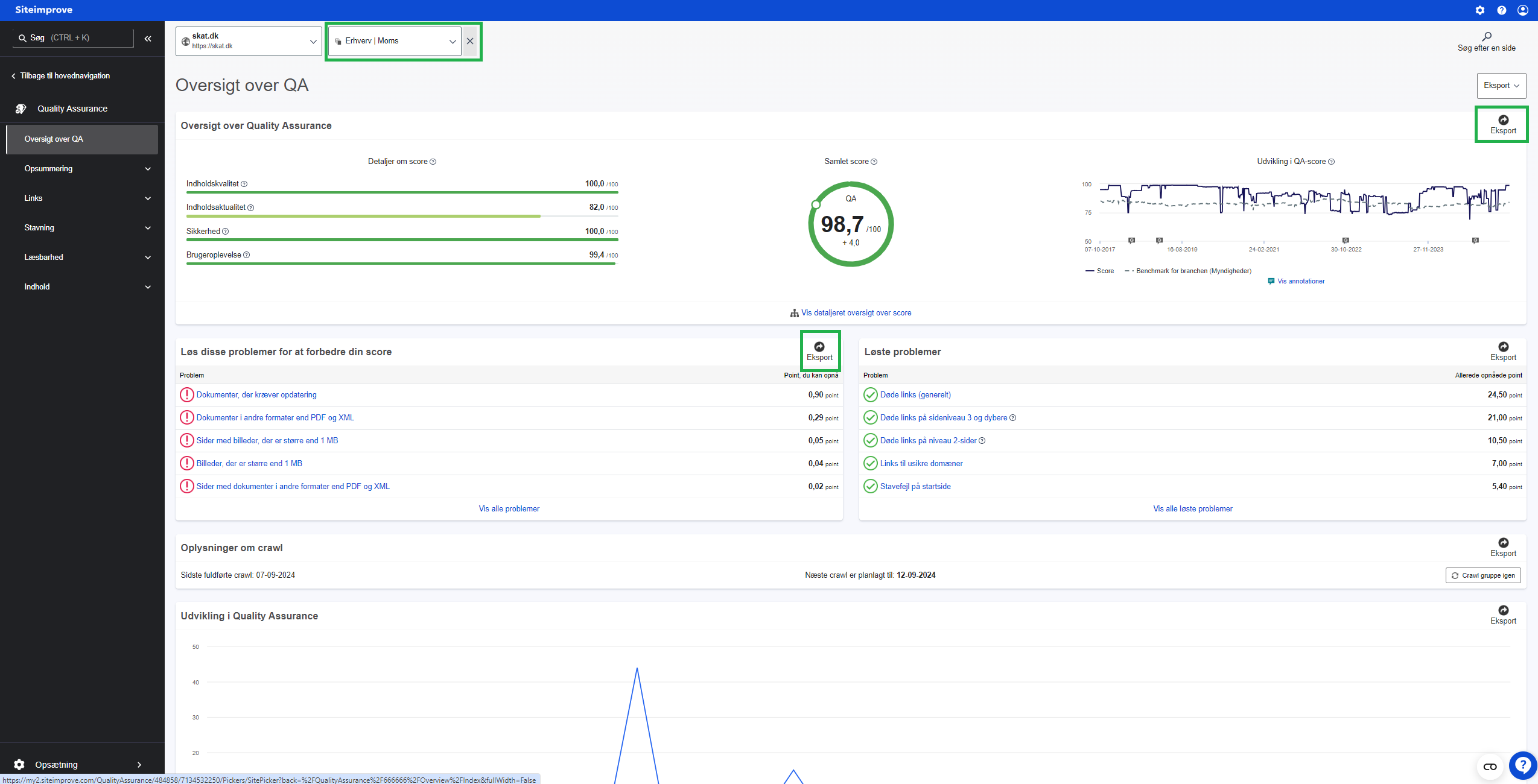 Du kan læse mere om de forskellige typer rapporter her hos Siteimprove
