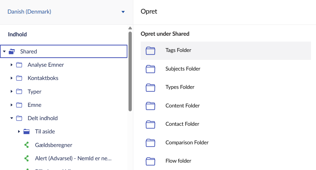 Afhængigt af hvilke type delt indhold, du ønsker at oprette, så skal du vælge den korrekte mappe til formålet.