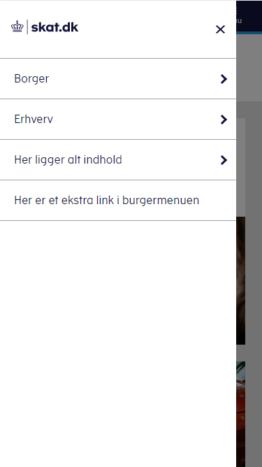 Burgermenuen indeholder automatisk de menupunkter, som er valgt til header.