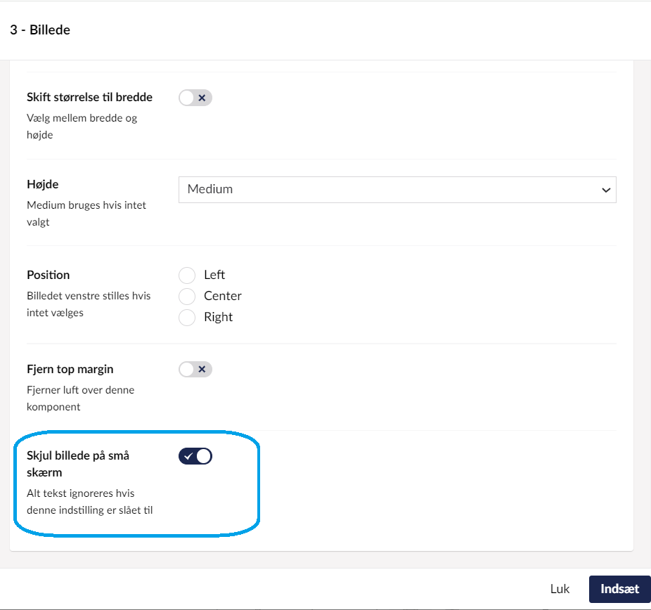 Ved alle billeder kan det vælges, at de ikke vises på mobil.