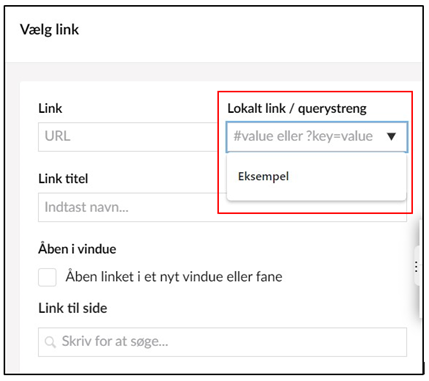Herefter vælges bogmærket i dropdownmenuen "Lokalt link".