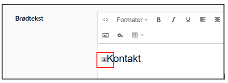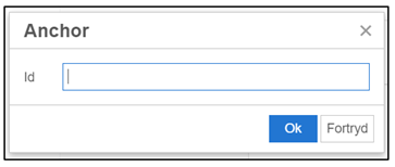 Når du har klikket "ok", kommer der et lille anker foran den tekst du markerede for at indikere, at der nu er et bogmærke. Dette kan kun ses i brødtekst-editoren og bliver derfor ikke synligt på hjemmesiden.
