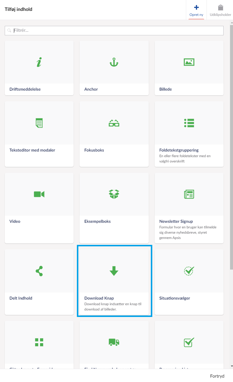 Brug komponenten hvis du ønsker at indsætte en knap til download af billeder