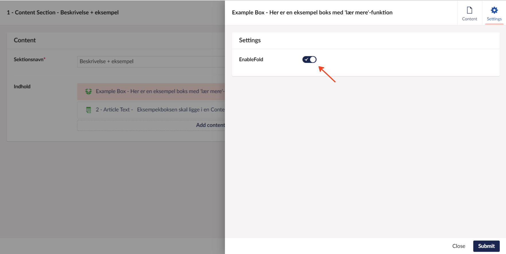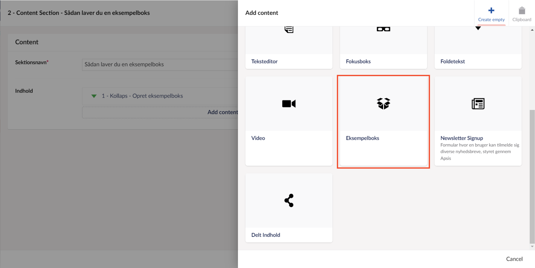 Eksempekboksen kan sættes ind på forskellige måder og bruges til at give et uddybende eksempel til indholdet på siden.
