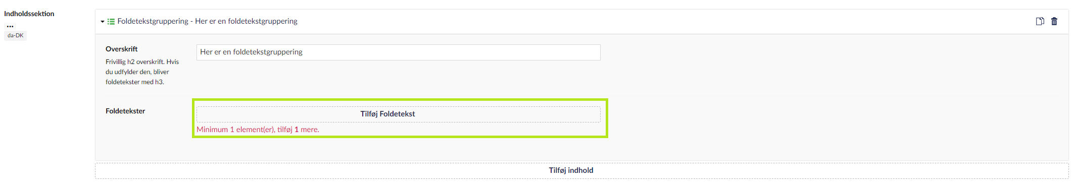 Der skal minimum vælges én foldetekst under hver gruppering.