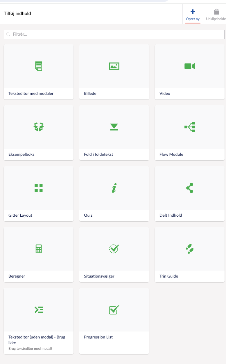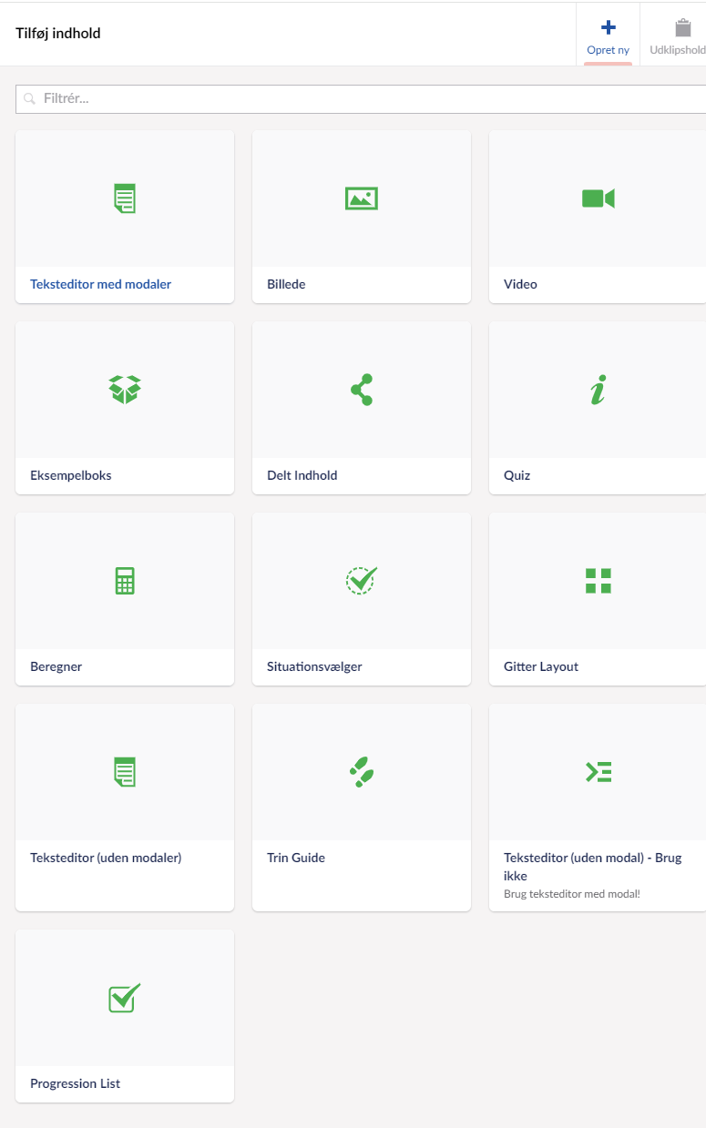 Der kan vælges mellem flere forskellige foldetekstkomponenter.