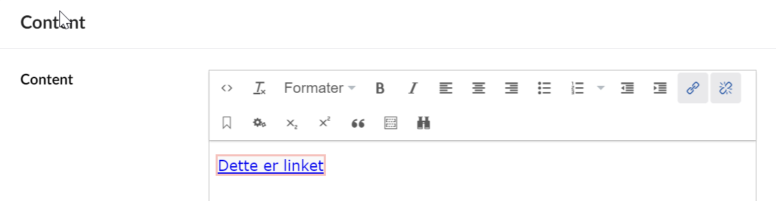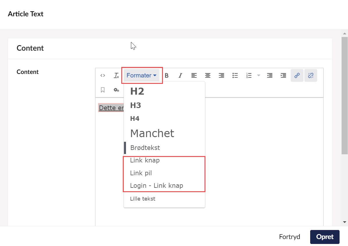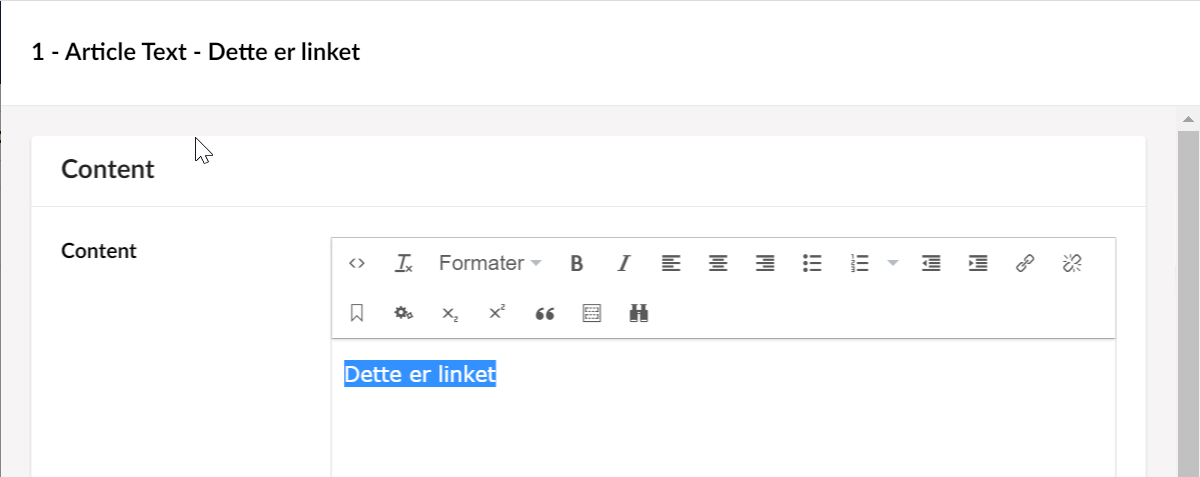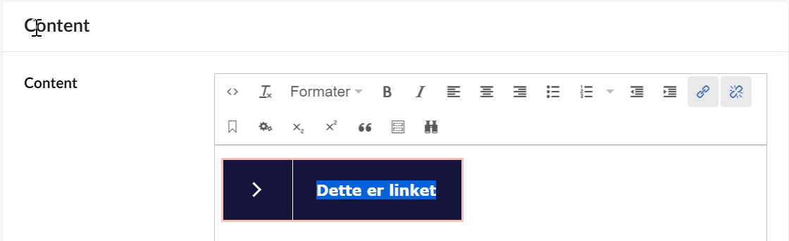 Tekst-editoren åbner. Marker den tekst, der skal blive til et link eller en knap.