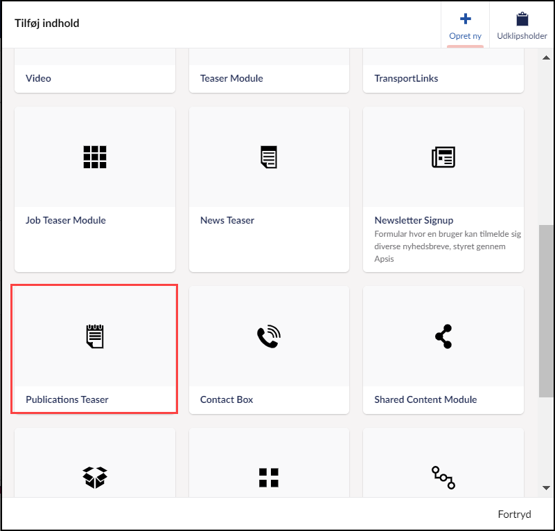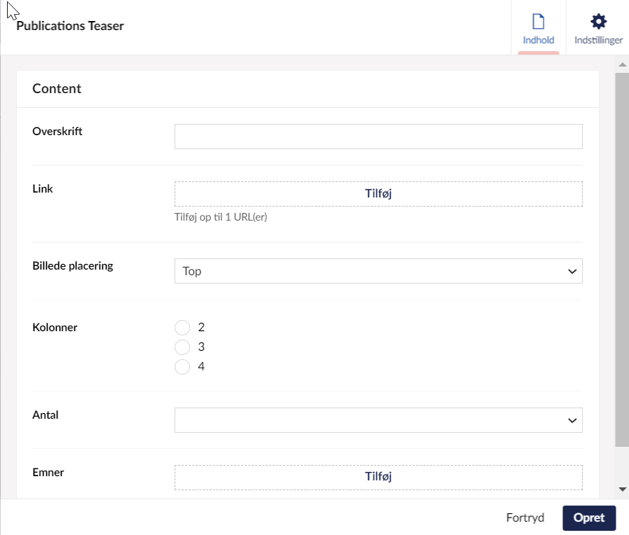 Vælg hvor mange publikationscards du ønsker at vise i sektionen.