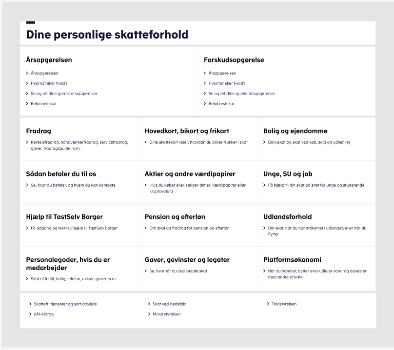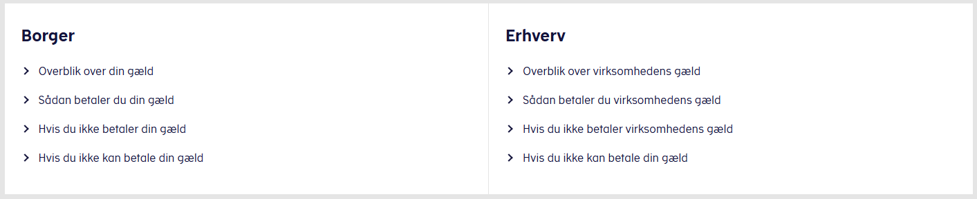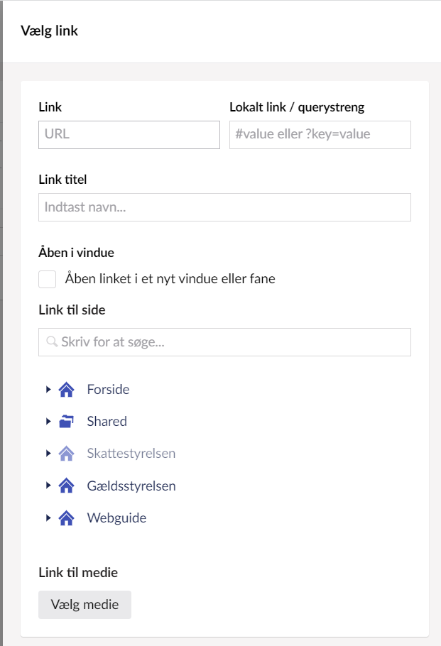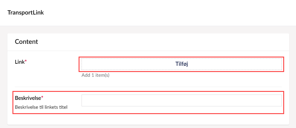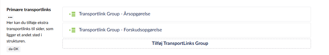 Transportlinks er den primære navigation på de underliggende sider, udover topmenuen som kun viser 1. sideniveau. Transportlinks bruges især til at vise flere mulige emner under en fælles overskrift.