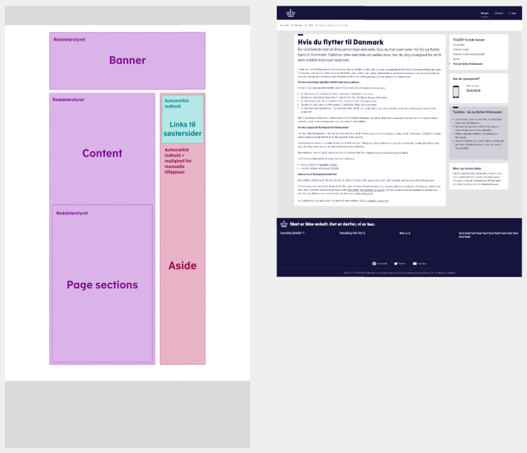 Sidetypen emneside er delt op i områderne Content, Aside, Banner og Page sections.