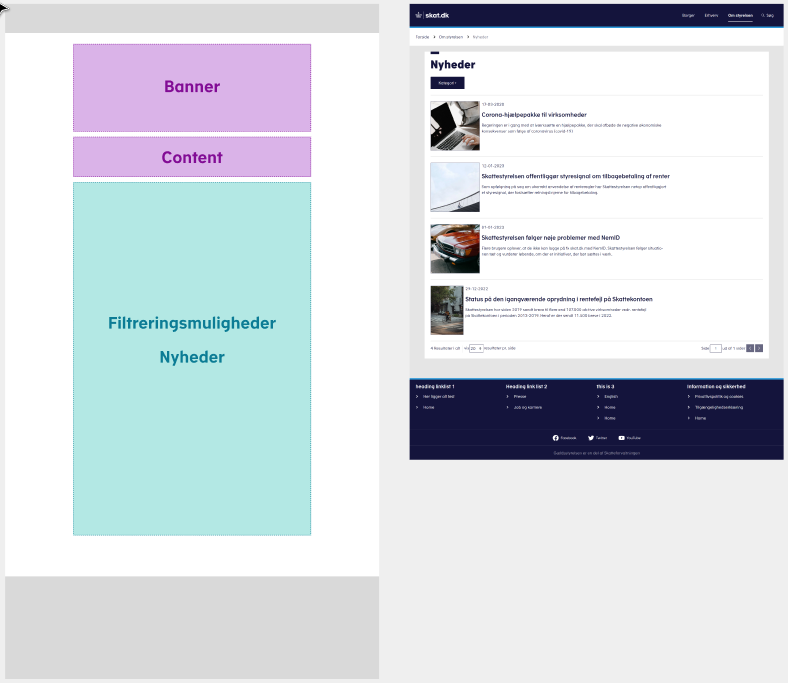 Sidetypen nyhedskatalogside er delt op i områderne banner og indhold.
