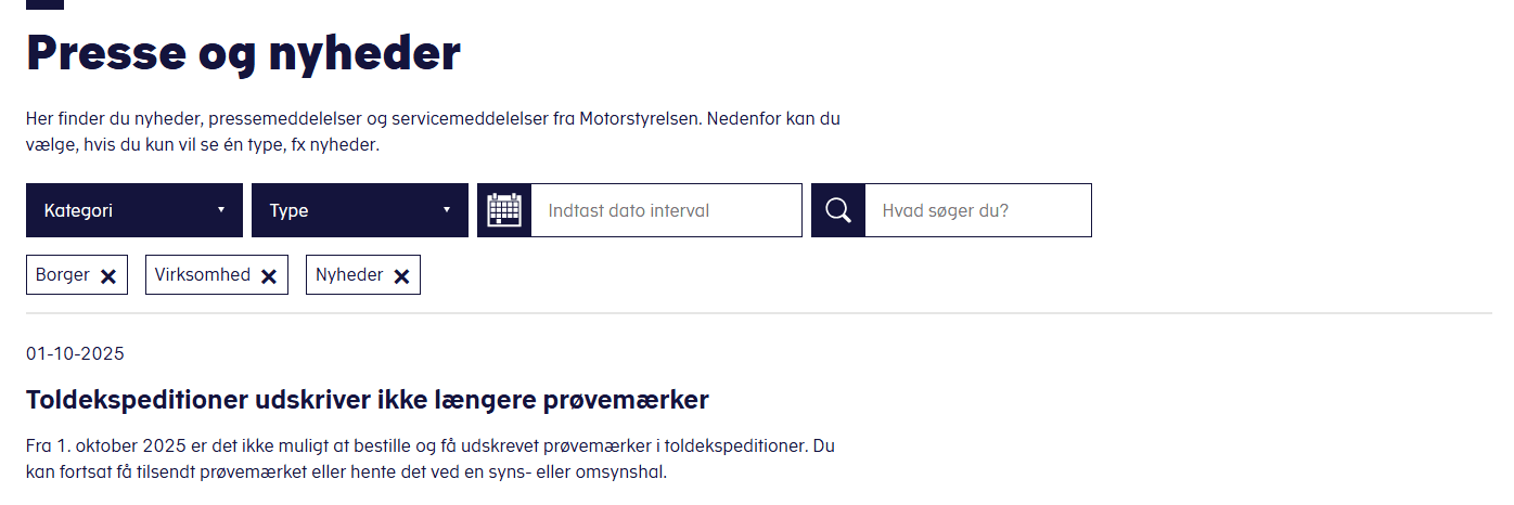 Derudover vil man på en nyhedsside kunne filtrere efter datointerval, samt søgeord. Nyheder vil desuden blive sorteret efter dato fra nyest til ældst.