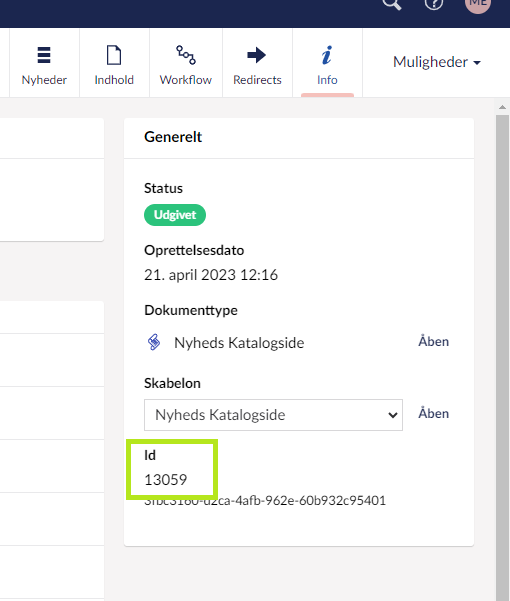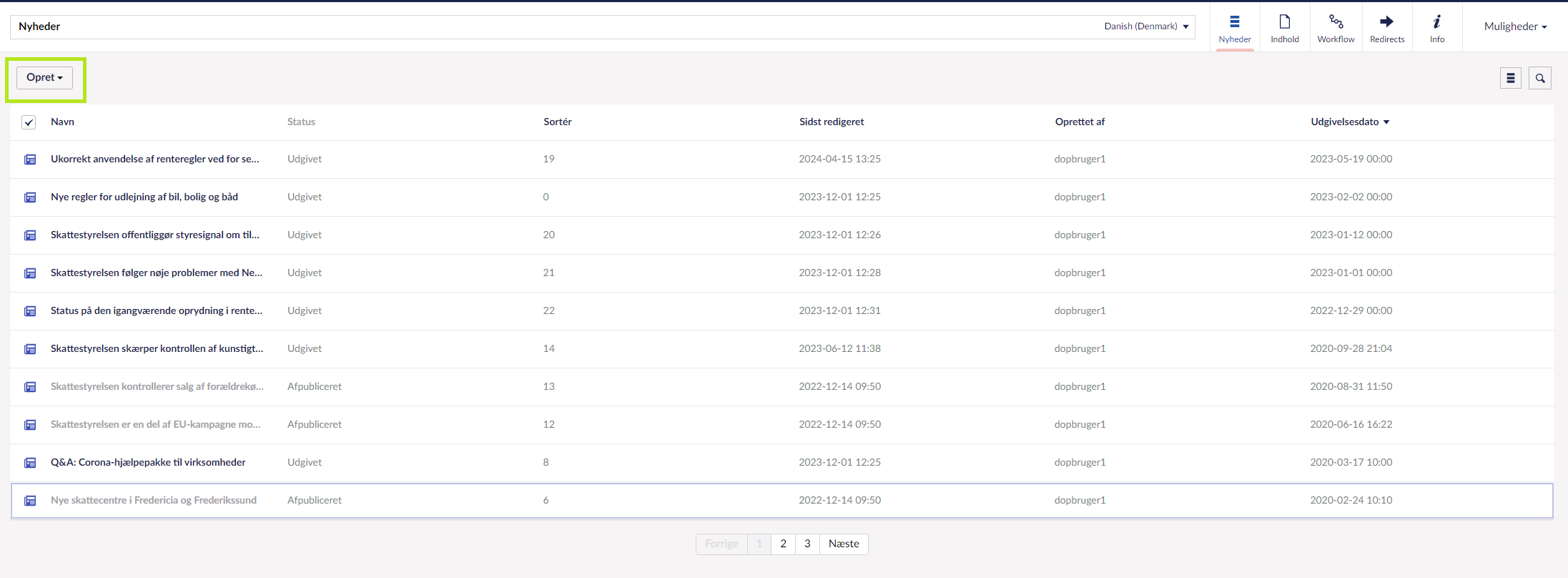 Man opretter den ved at klikke på 'opret' og vælge 'nyhedskatalogside'