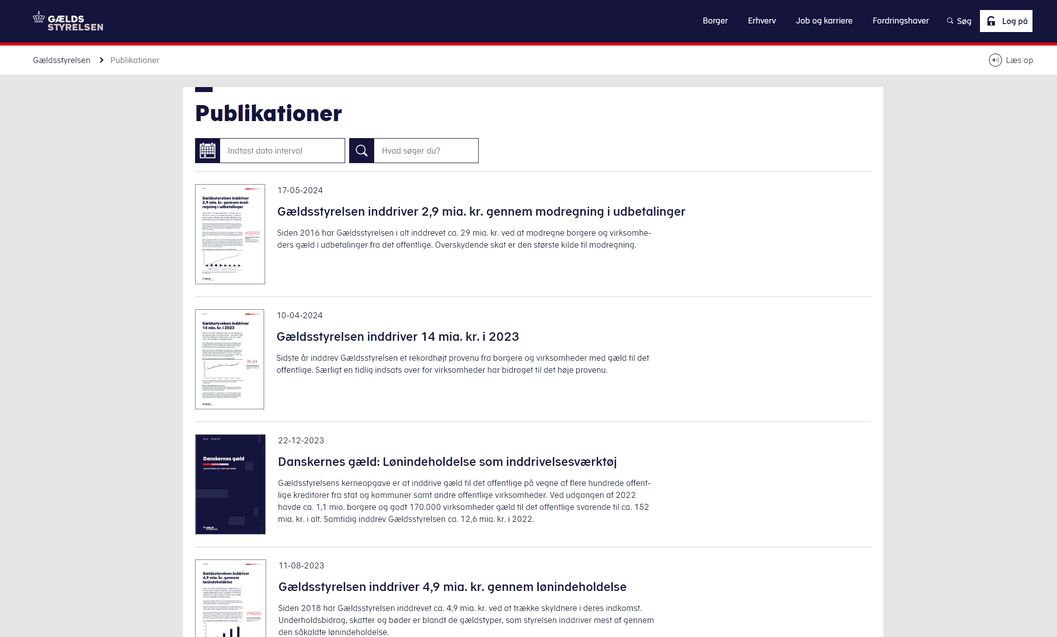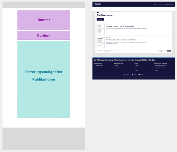 Sidetypen Publikationskatalogside er delt op i områderne banner og indhold.
