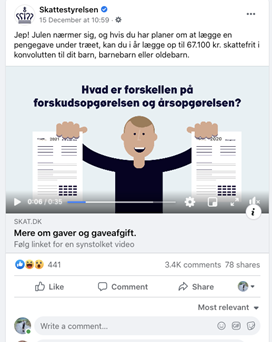 Den synstolkede version af videoen behøver ikke ligge direkte i opslaget, men kan ligge på en landingsside - fx på skat.dk. Du kan derfor integrere den synstolkede version af videoen med en kort bemærkning i opslaget om, at der findes en synstolket version, hvis man følger linket i opslaget.